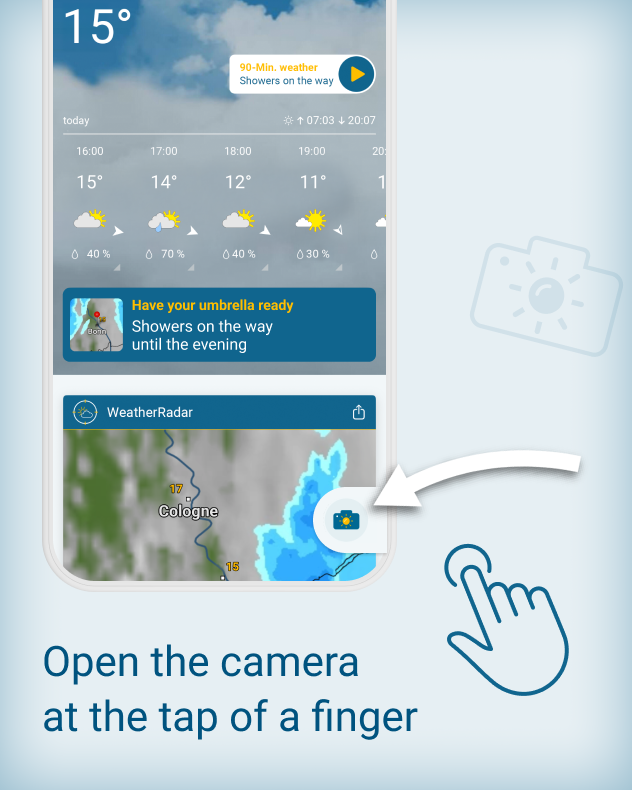 With the new feature of the Weather & Radar app, you can capture precisely these moments – quickly, easily, and directly from the app. We automatically add the location, time, and weather data – just record and watch it all come together.