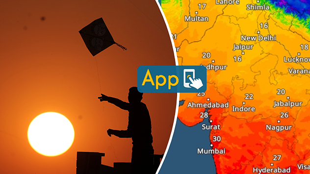 Split image with a picture of a supermoon on the left, weather radar of India on the right.