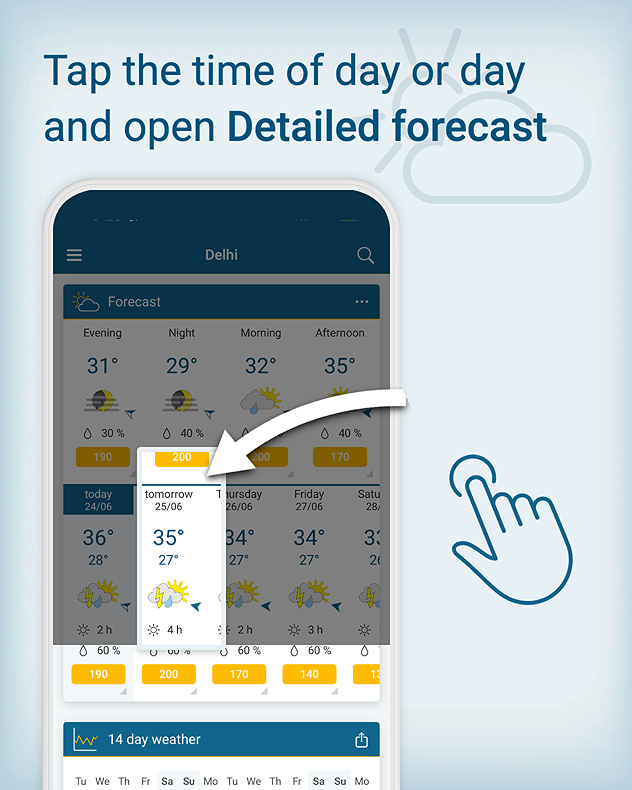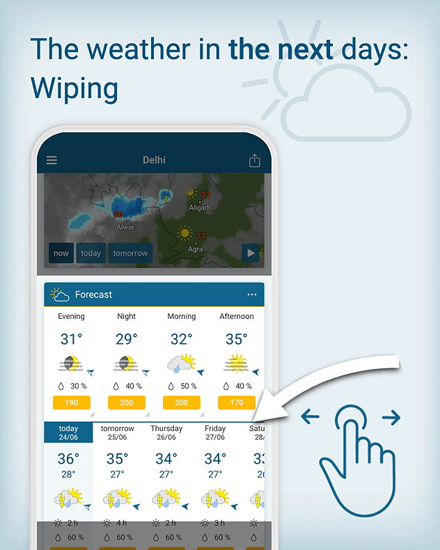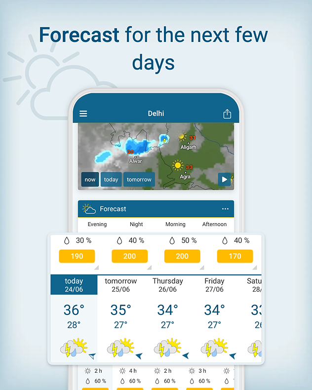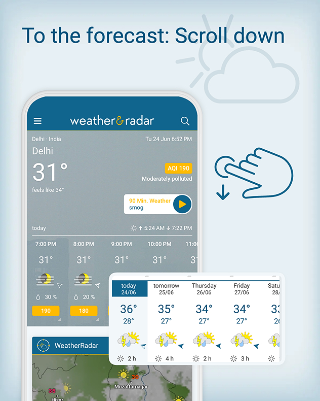 The Weather & Radar app can be your real-time guide. Its live radar shows where rain is falling, how intense it is, and how long it may last. You can keep an eye on the weather for the next few days.